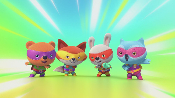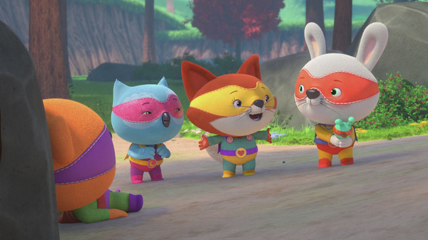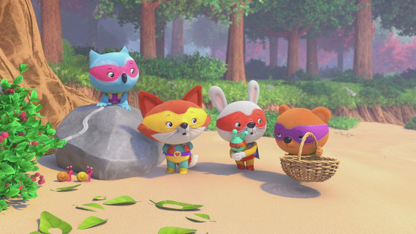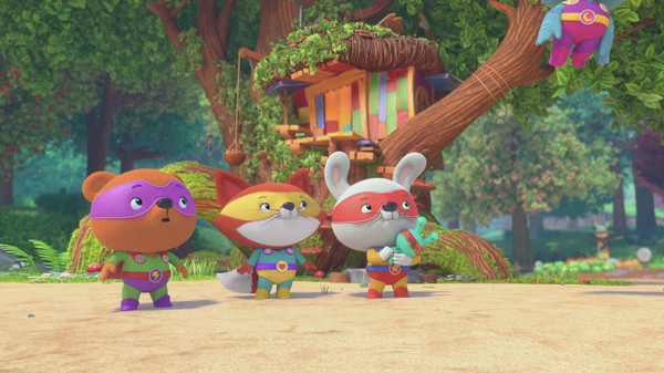 Chaque jour, Jade le Renard, Gaston l'Ours, Gabin le Lapin et Juliette la Chouette enfilent leurs costumes de mini héros pour partir en super méga aventures dans la forêt.