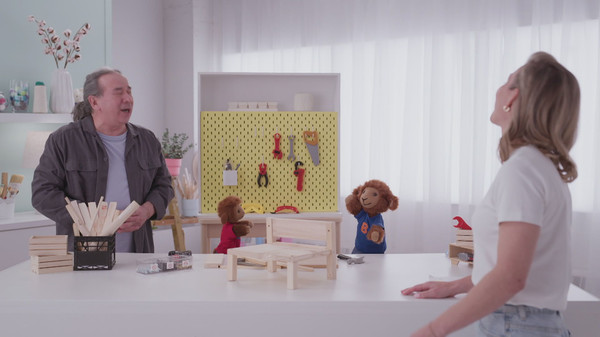 Chaque jour après l'école, Biscuit et Cassonade se rendent chez leur gardienne Caroline. Dans son atelier d'artiste, elle se sert d'objets du quotidien pour créer d'étonnants décors miniatures où le trio s'amuse à imaginer des histoires rigolotes.