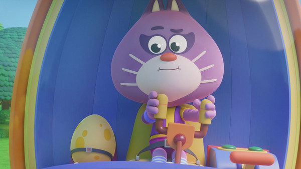 Cathy veut pouvoir bouger dans tous les sens comme Sacha. Les Trois Bricochons lui fabriquent un véhicule en forme d'oeuf très amusant à conduire. Mais Wilf le fait dérailler et l'énorme oeuf semble impossible à arrêter...