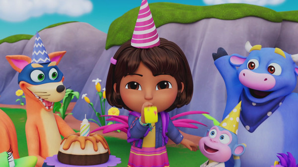 Dora et Babouche retrouvent le gâteau d'anniversaire perdu de Dora, et la famille lui organise une fête surprise !