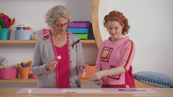 Grand-Mère demande l'aide de Passe-Carreau pour créer un dessin-collage inspiré de l'oeuvre «Peintre et coucou», de Marc Séguin. Elles passent un bon moment ensemble à faire cette activité artistique, et nous invitent à la reproduire à la maison.